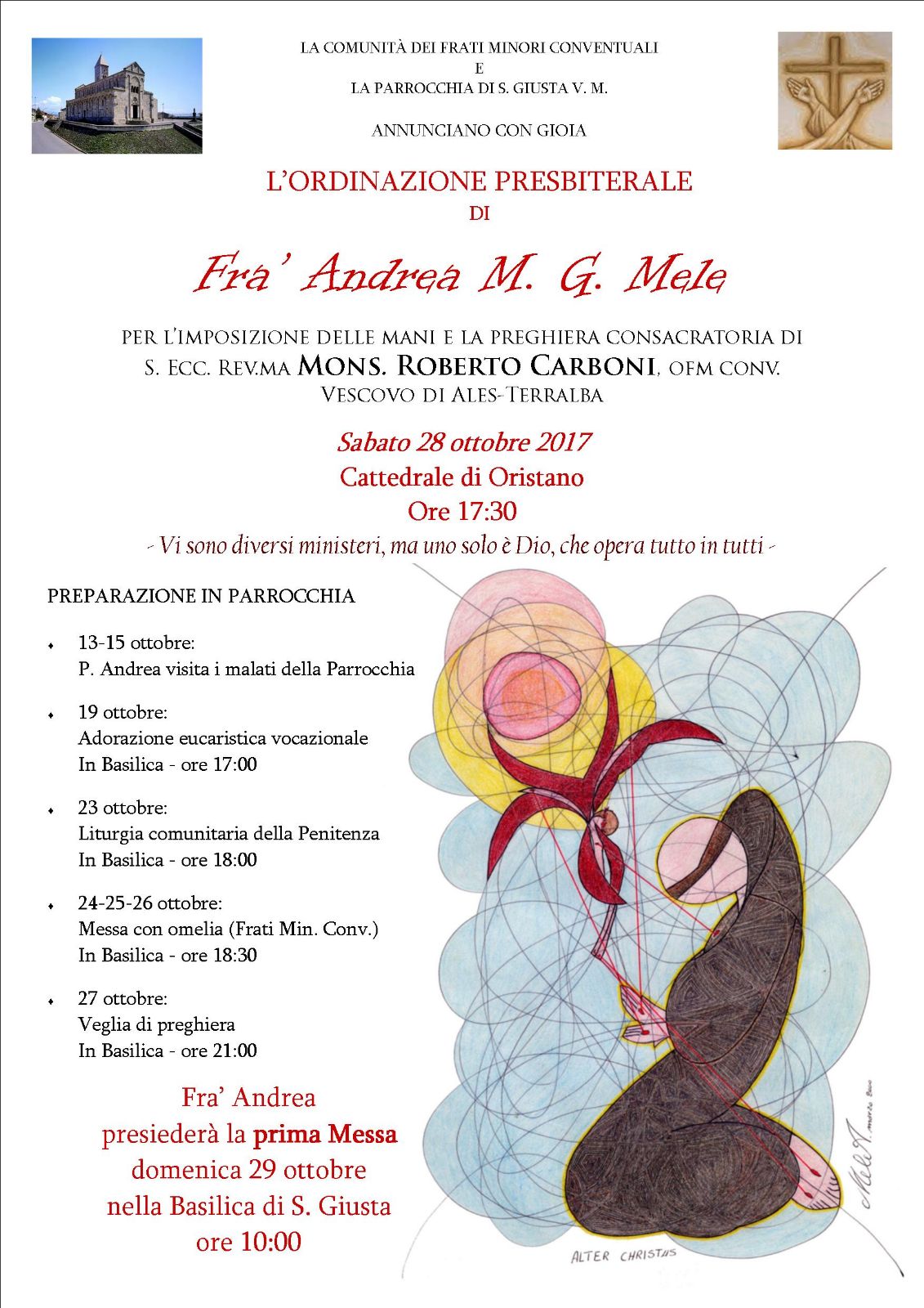 Ordinazione Presbiteriale di Fra’ Andrea Mele O.F.M.CONV. Pubblicato giorno 17 settembre 2017 - In home page
